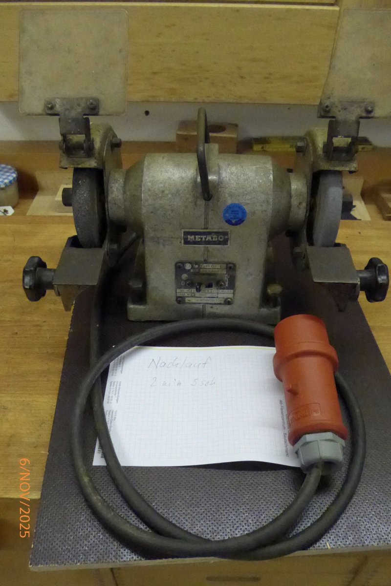 Hallo, hier ein unrestaurierter aber funktionsfähiger Doppelschleifbock mit Drehstromanschluß.