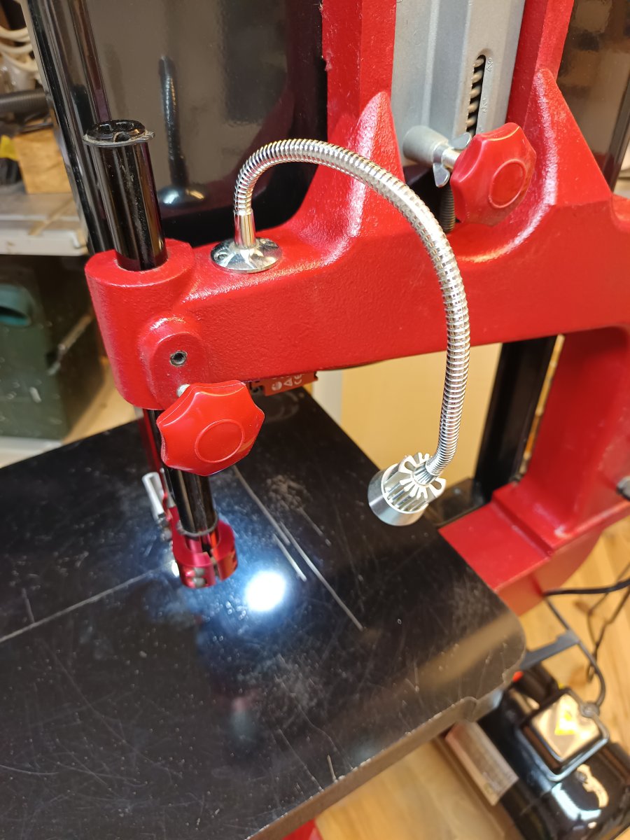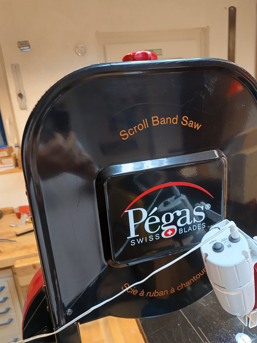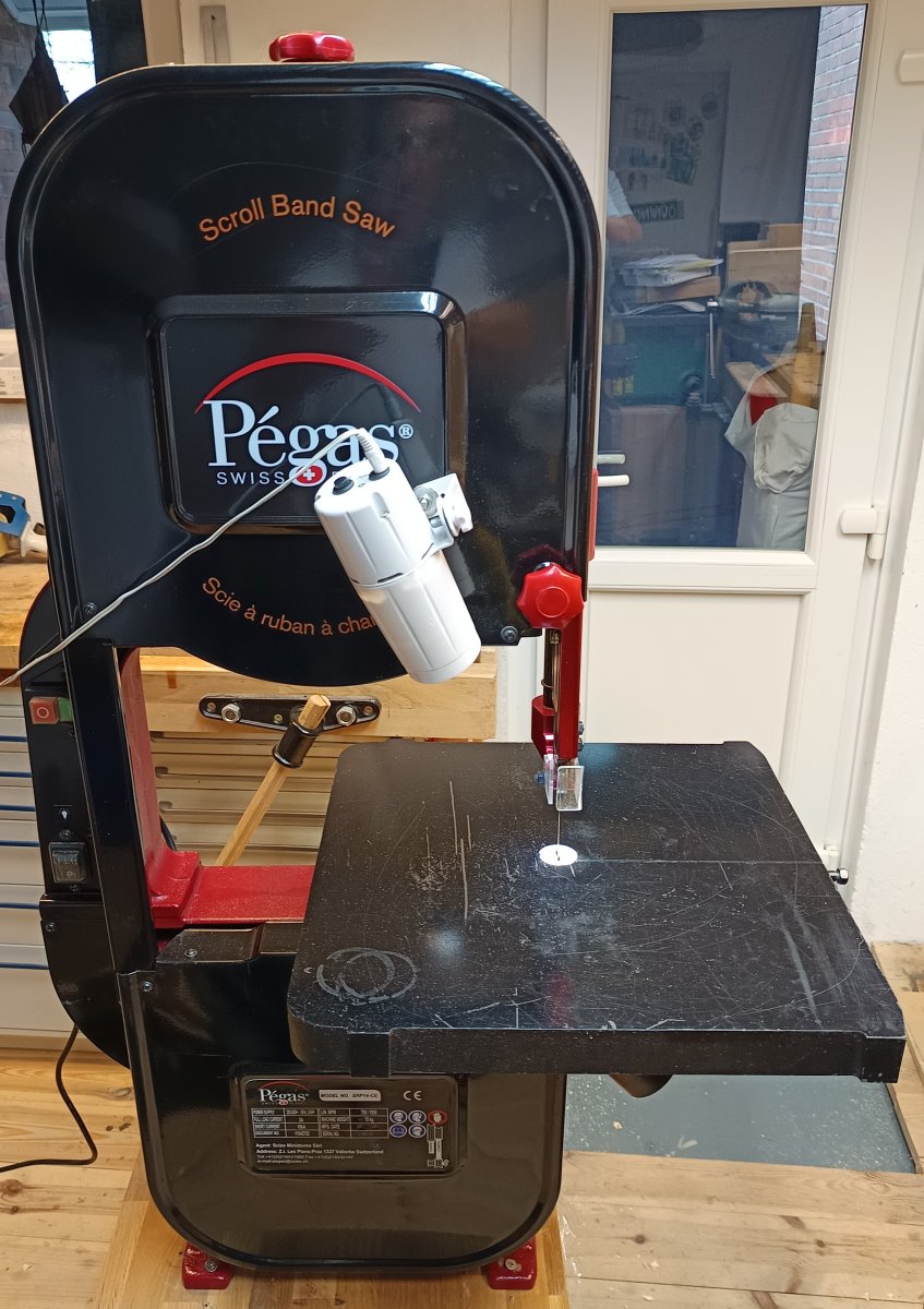 Ich verkaufe meine Pegas Feinschnittbandsäge, die ich gemessen an dem Wert viel zu selten nutze. Ich hab die Säge gebraucht gekauft, sie hat auch leichte Gebrauchsspuren, vor allem auf dem Tisch. Der Vorbesitzer hat eien weitere Lampe montiert, die sehr gutes Licht auf den Schnitt gibt, Das ist einee wirklich Verbsserung. Die von mitgelieferte Lampe funktioniert auch.