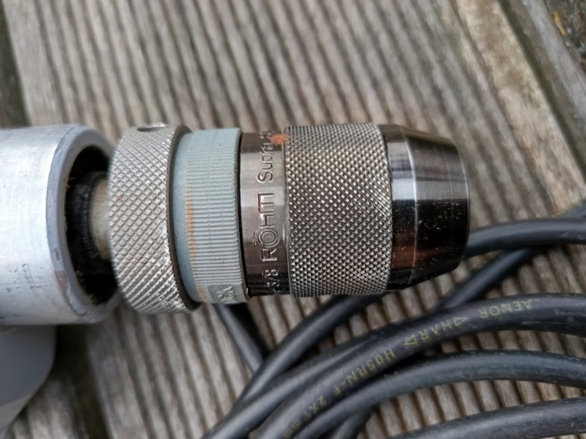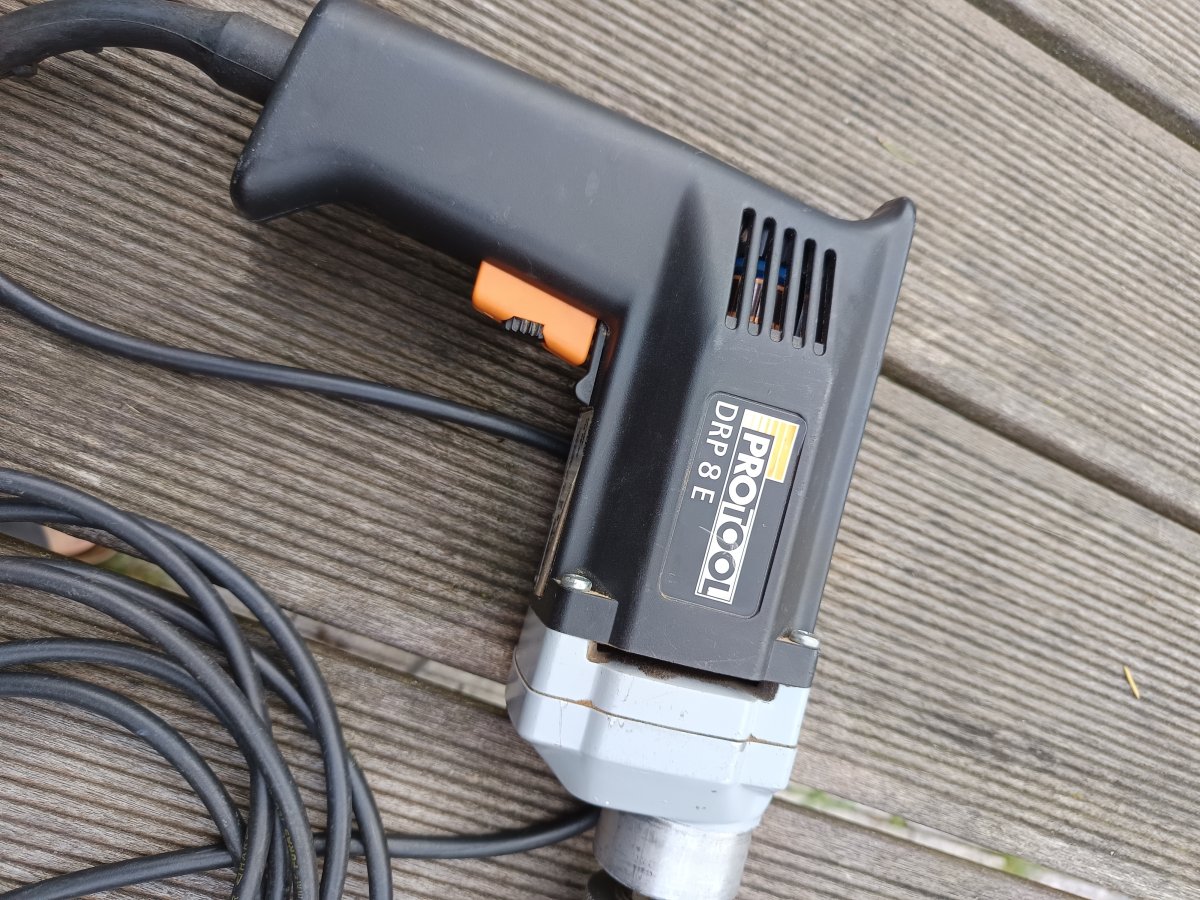 Die Bohrmaschine (gebrauchte Protool, eine Festool Tochter mit Röhm Futter) ist nur Deko, kann aber bei Bedarf für kleines Geld dazu erworben werden.