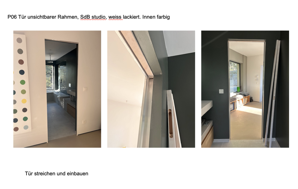 Der Einbau von insgesamt 13 Türen (Wingburg Schiebetüren und DHER Flügeltüren) sollten ordnungsgemäss abgeschlossen werden; es fehlen Justierung, Isolierung, ein Schloss, Farbe, etc.