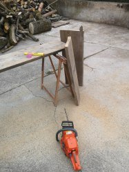 Von einer der Bohlen wurden zwei Stücke abgeschnitten.