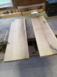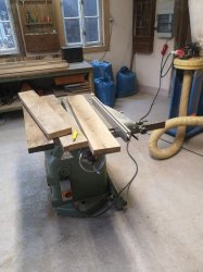 Anschließend wurden diese mit der Kreissäge besäumt und aufgeschnitten. In Summe hatte ich also vier Einzelteile. Dann gings über die Abrichte und durch den Dickenhobel.