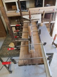 Bei der Verleimung bin ich nicht ganz nach den Empfehlungen vorgegangen, ich denke aber das sich aufgrund der eher geringen Abmessungen, der langen Trocknungszeit und den gleichbleibenden Temperatur- und Feuchtigkeitsverhältnissen nichts verziehen sollte.