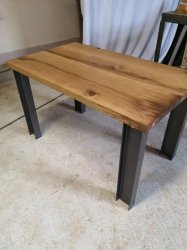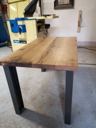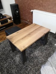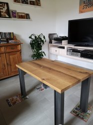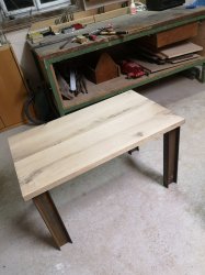 Hi, ich möchte euch hier mit meinem ersten Beitrag mein aktuelles Projekt näherbringen: Ein Couchtisch aus Eiche Massiv mit IPE80-Stahlträgern als Tischbeine.