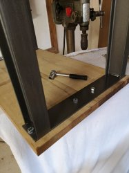Zu guter letzt wurden die Stahlbeine an die Platte geschraubt.