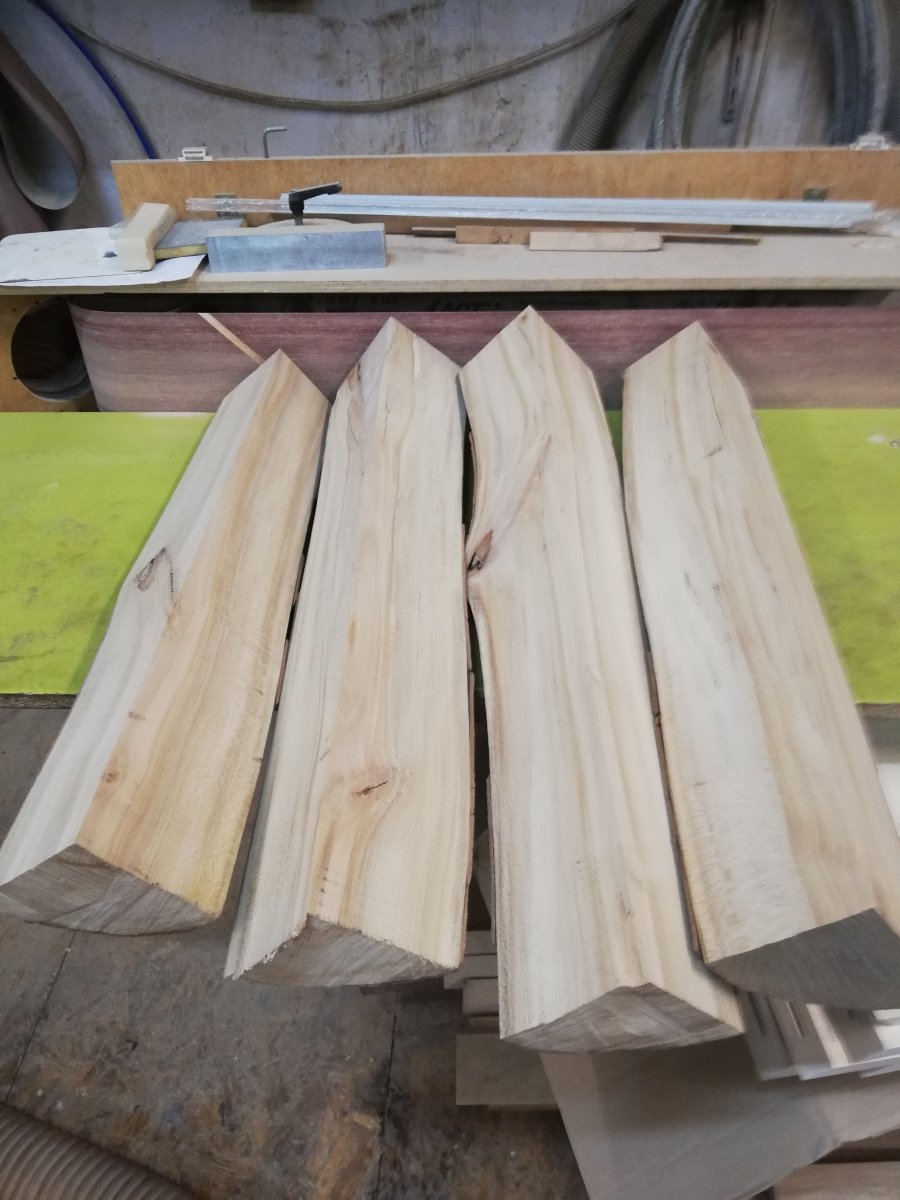 4 Tischbeine mit Waldkante aus Platane. Winklig gehobelt ca 10x10cm Länge möglich 74cm.